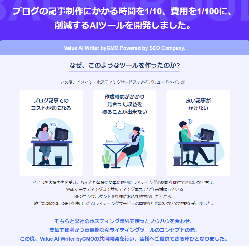 ウェブマスターやマーケターにとって、SEO対策は日々の業務の中で欠かせない要素です。Value AI Writerは、そのようなプロフェッショナルたちが時間を節約し、同時にSEOの効果を最大化するための理想的なツールと言えるでしょう。高品質SEO記事生成AIツールとして、Value AI Writerは、コンテンツマーケティングの未来を形作る重要な役割を担っています。